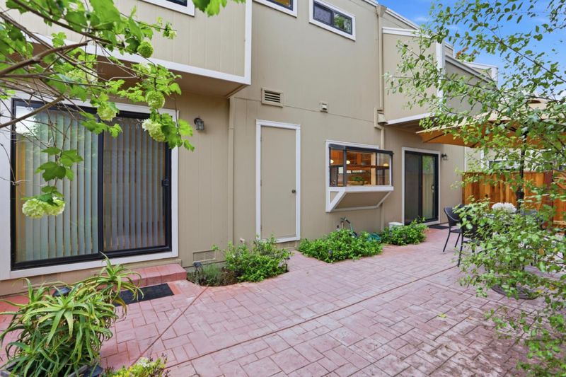 Discover effortless living in this light-filled end-unit townhouse, featuring 3 bedrooms and 2.5 baths across two thoughtfully designed levels. The updated kitchen impresses with a garden window, tile backsplash, Fisher Paykel dishdrawer, and durable laminate flooring that flows through the living and dining areas. Cozy up by the living-room fireplace, or step outside to your private backyard, enclosed by a newer fence. Upstairs, two ensuite bedrooms and a convenient laundry closet rest at the top of a carpeted stairwell; the primary suite delights with a high ceiling, its own fireplace, and balcony overlooking the peaceful backyard. A semi-private balcony above the 1-car garage offers a perfect morning retreat. Additional uncovered parking in front of unit. Nestled within a boutique 12-unit enclave, enjoy easy freeway access and a swift commute to Silicon Valleys tech hubs. When visiting, please park in stall #11. There are no guest parking.