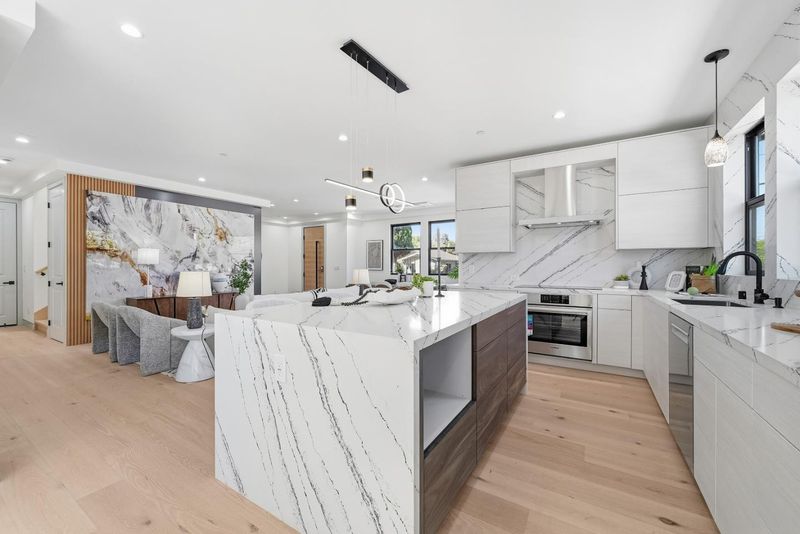 - Cooktop - Electric, Countertop - Quartz, Exhaust Fan, Island, Oven - Built-In, Refrigerator